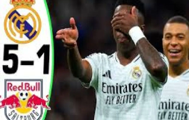 Real Madrid put on a strong show in their Champions League match against RB Salzburg, winning 5-1 in Madrid. Brazilian players Rodrygo and Vinicius Jr each scored two goals, and Kylian Mbappé added another after the Salzburg goalkeeper made a mistake. Even though Salzburg started aggressively and pressed hard, Madrid took control of the game, thanks to great performances from their attackers and Jude Bellingham. Vinicius stood out with two amazing solo goals in the second half, helping Madrid secure a big win. With this result, Madrid moved up to 16th place in the standings and qualified for the next round. However, they still need to win their final group-stage game and hope for other results to go their way to avoid a playoff. On the other hand, Salzburg’s chances ended as they were knocked out, finishing third from the bottom with only three points.