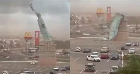 A powerful storm system lashed southern Brazil on Monday, December 15, destroying the 24-meter-long (79-foot) replica of the Statue of Liberty outside a Havan megastore in Guaiba, Rio Grande do Sul state. On-the-scene footage shows the dramatic fall of the huge structure into an empty parking area.