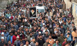 Thousands of Shia Muslims took to the streets in Budgam district and other Shia-dominated areas of Kashmir, carrying portraits of the late leader and raising slogans to express solidarity with Iran.