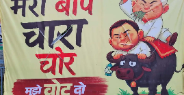 Amid this controversy, NDA-supported posters have been put up everywhere. BJP and JDU leaders have termed Tejashwi’s statement as a ‘direct insult’ to the Prime Minister and State Chief Minister Nitish Kumar. A poster at major intersections in Patna has caught people’s attention, in which it is written: “Mera baap chara chor hai, mujhe vote do”. The poster features a cartoon of RJD chief Lalu Prasad Yadav and opposition leader Tejashwi Yadav, sitting on a buffalo with a lantern in hand.