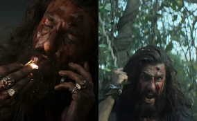 Ranveer Singh looks fierce in the first look of Dhurandhar. With long hair and a cigarette in his mouth, he fights and kills with ease and style. The energetic background music adds to the intense vibe, giving a sneak peek of the action and bloodshed in the film.