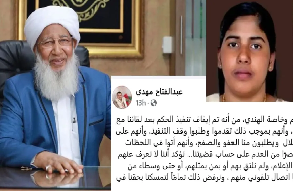“What we are hearing through the flags, especially in Indian, that the execution of the judgement has been stopped after our meeting with Indian and Yemenis advocates, that they have come forward and demanded the halt of the execution, that they are in contact with Talal family and asking for forgiveness and forgiveness, that they have arrived at the last moments and are making a victory out of nothing at the expense of our case… We confirm that we only know about them through the media, we have not met with them or their representatives, or even intermediaries before them, until we received a phone call from them, and we completely refuse to hold on to our right to implement the law of Allah.