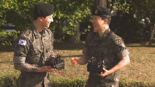 Both of them had finished their 18-months of service at the 5th Infantry Division in Yeoncheon, Gyeonggi Province, where they had entered together. The two celebrities were greeted by the enthusiastic fans and the media as they arrived at Yeoncheon Public Stadium. They carried flowers, proudly saluted and conveyed messages to their fans worldwide.