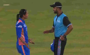 In match between Mumbai Indians and UP Warriorz, Harmanpreet Kaur and Sophie Ecclestone got involved in heated argument which led to the on-field umpires intervene and stop the tense exchange.