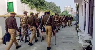 On November 24, police and district administration officials conducted a flag march in Sambhal as part of efforts to create a sense of security among people.